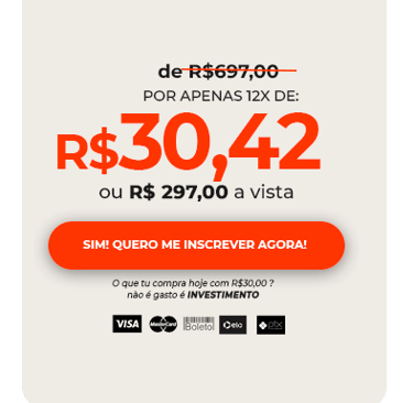 Normalmente, isso tudo custaria R$697,00, mas, garantindo a sua vaga agora, você tem acesso a uma condição especial...