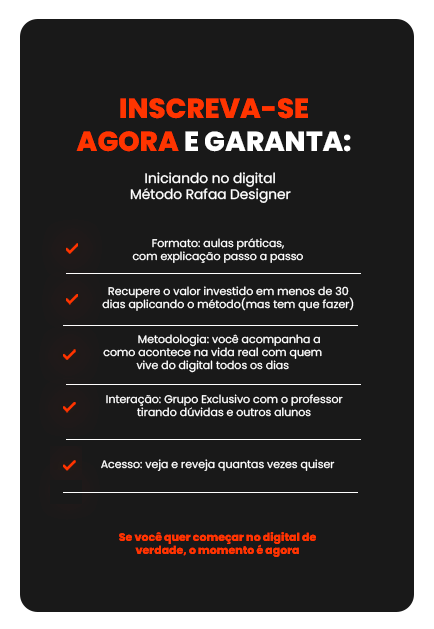 O Método RAFAA DESIGNER reúne as estratégias e práticas mais eficientes do marketing digital, utilizadas para sair do zero e construir uma estrutura capaz de gerar vendas com infoprodutos e afiliados no cenário atual da internet.
