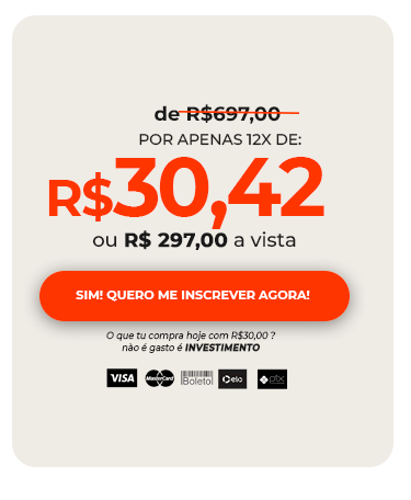 Normalmente, isso tudo custaria R$697,00, mas, garantindo a sua vaga agora, você tem acesso a uma condição especial...