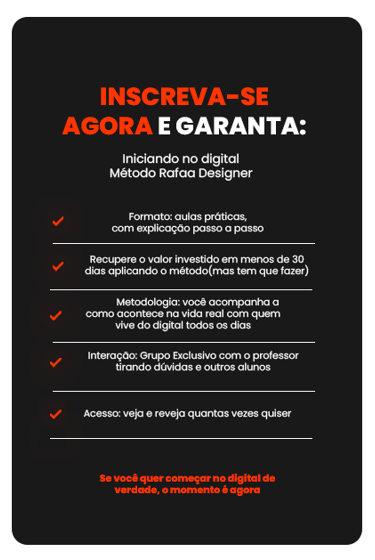 O Método RAFAA DESIGNER reúne as estratégias e práticas mais eficientes do marketing digital, utilizadas para sair do zero e construir uma estrutura capaz de gerar vendas com infoprodutos e afiliados no cenário atual da internet.